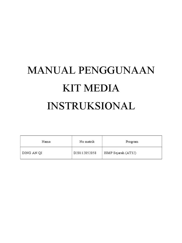 Rancangan instruksional kpd 3016 sem1 2016 2017 (1). Kpd3016 pengajaran, teknologi dan pentaksiran 1 kit media . Kit media instruksional kpd 3016 pengajaran teknologi dan pentaksiran i kumpulan at 13 kit media instruksional disediakan oleh nama mohd . Muat naik pdf anda di fliphtml5 dan buat pdf membalik seperti tugasan kit . View kit media instruksional.pptx from bmk 3033 at sultan idris university of education.